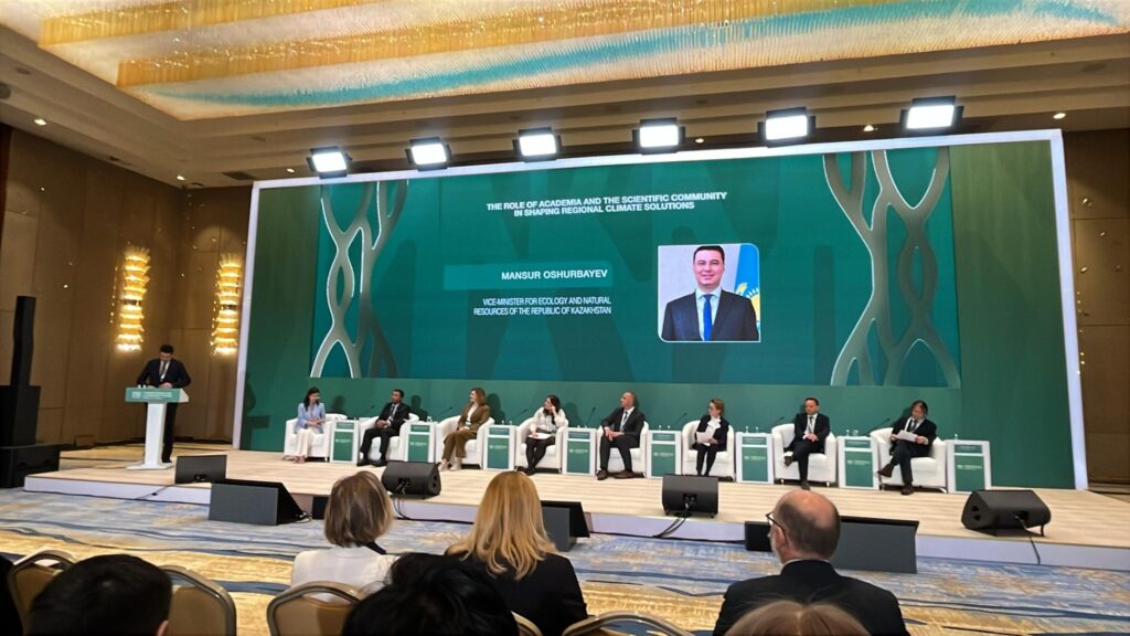Научно-образовательный центр «Зеленая Академия» совместно с МНВО РК (ҚР Ғылым және жоғары білім министрлігі) при поддержке международных партнеров – МНТЦ (ISTC), УЦА (University of Central Asia), ИА «Караван Инфо» 24 апреля 2026г. в г. Астана в рамках Регионального экологического саммита (РЭС) выступил организатором панельной сессии на тему «Роль академического и научного сообщества в разработке региональных климатических решений».