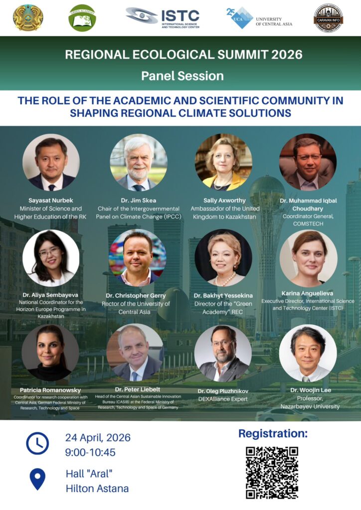 Научно-образовательный центр «Зеленая Академия» совместно с Министерством науки и высшего образования РК и Министерством экологии и природных ресурсов в рамках Регионального экологического саммита (РЭС) проводит Панельную сессию на тему «Роль академического и научного сообщества в разработке региональных климатических решений»